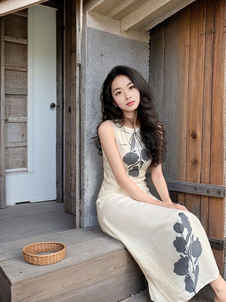 • 新中式女装气质复古印花连衣裙夏季小众设计慵懒度假风背心长裙子