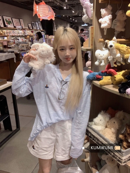 • MR 原版面料 慵懒宽松条纹防晒长袖T恤女经典百搭圆领上衣夏