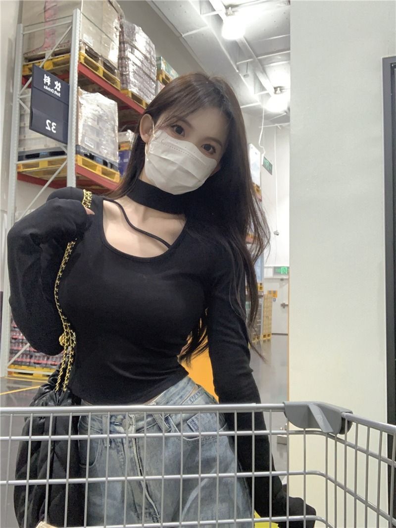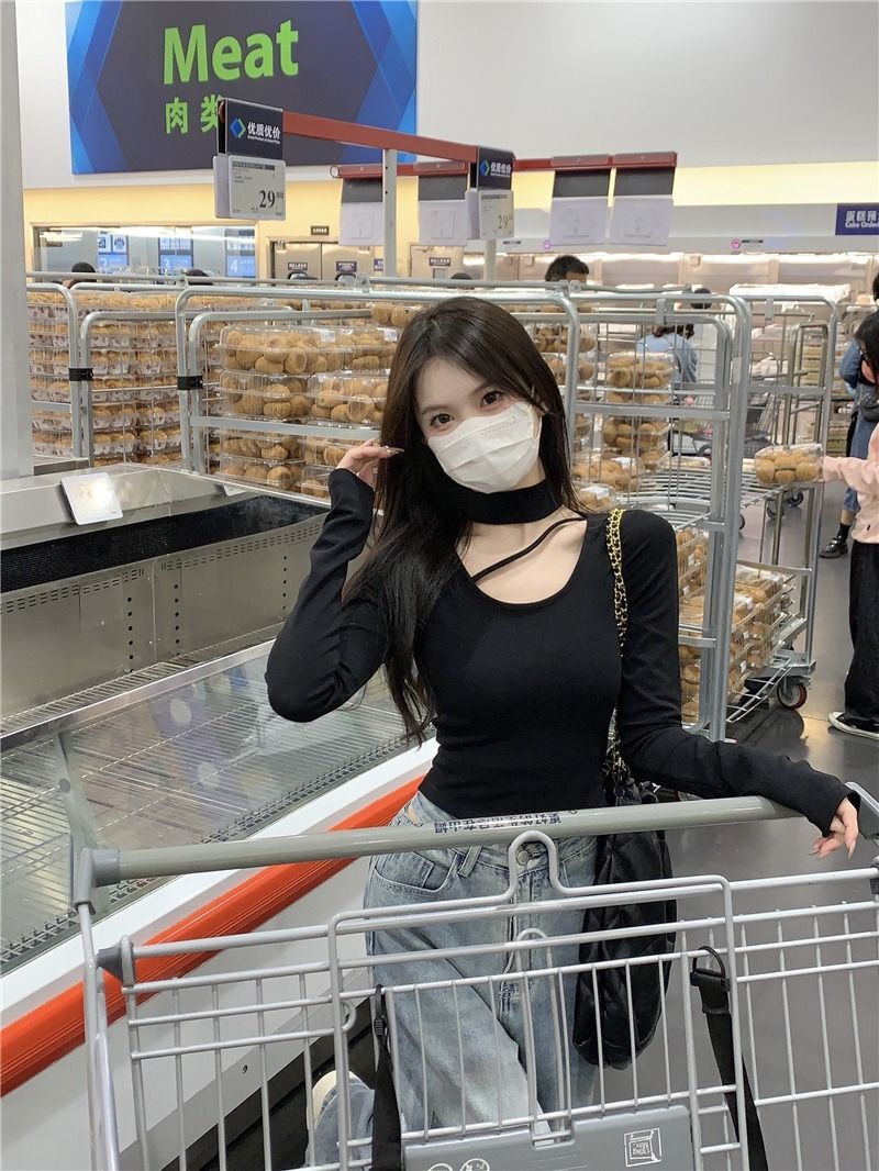 MR【螺纹德绒】秋冬内搭打底衫上衣设计感挂脖半高领修身短款t