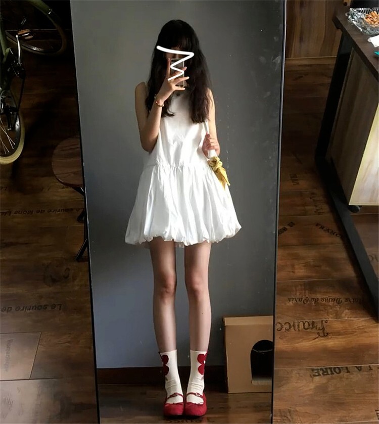 • 法式小个子白色无袖背心连衣裙子女夏季2025新款花苞蓬蓬吊带