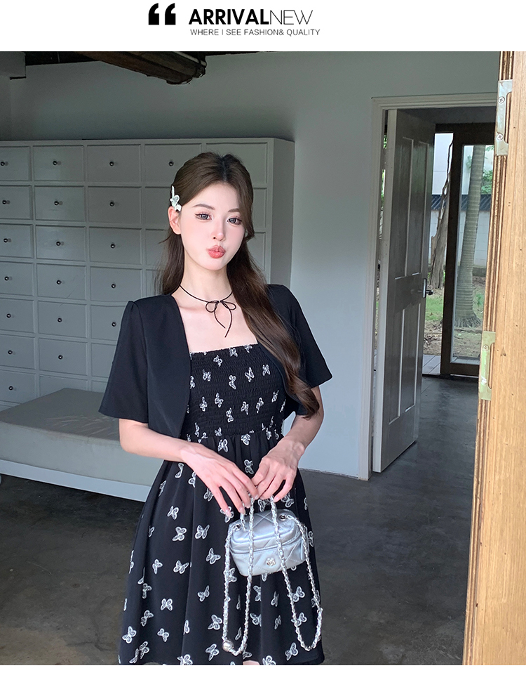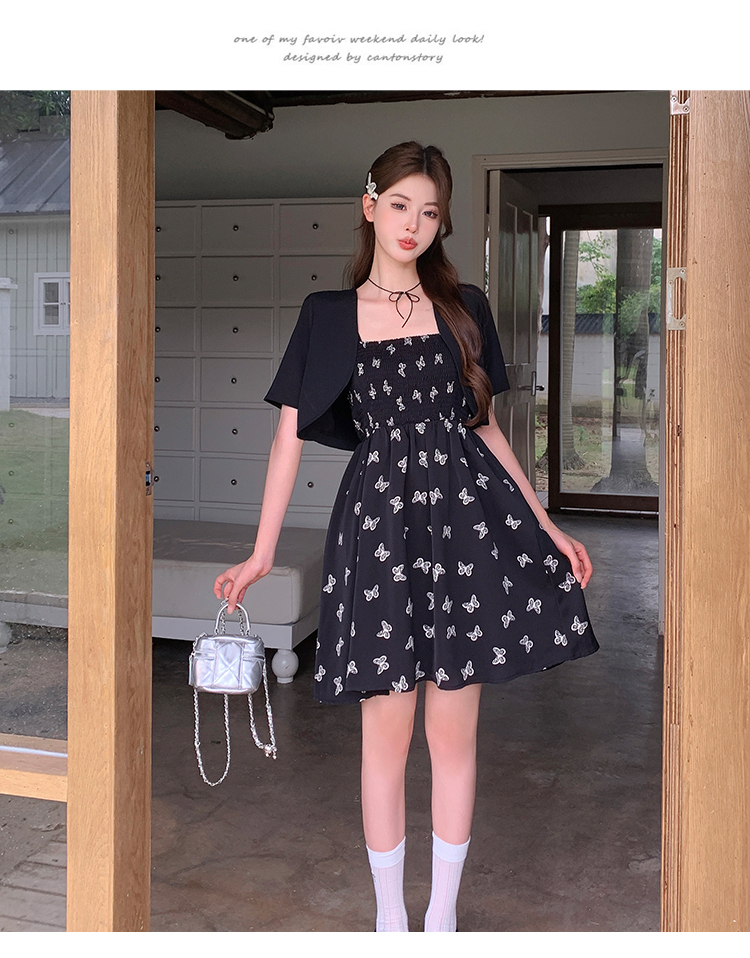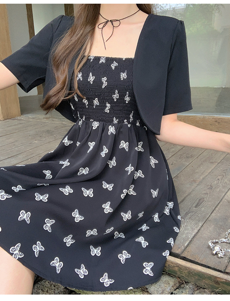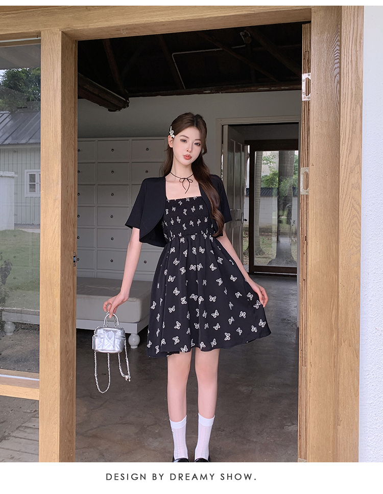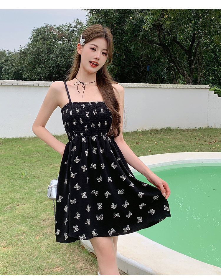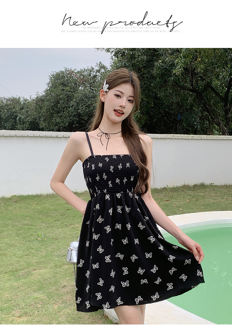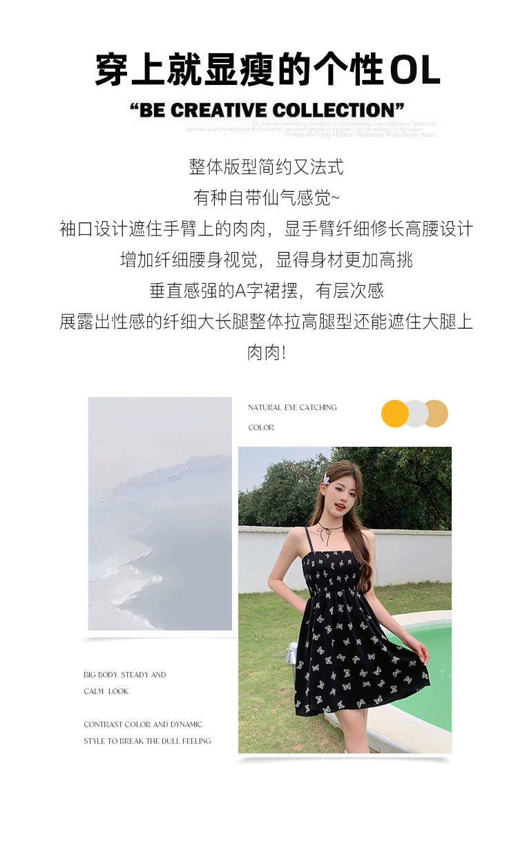 - 复古海边度假风格子连衣裙简约气质背心裙