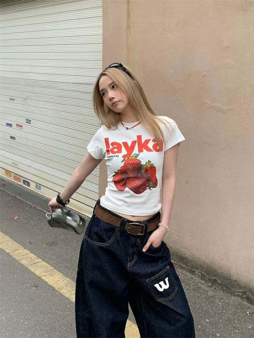 • 【1*1纯棉 常规款】印花正肩常规短袖 高弹力新款夏季修身显
