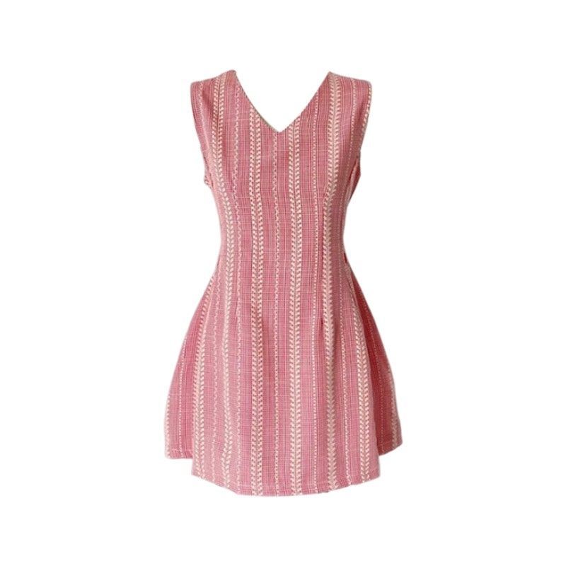 - 纯欲辣妹红色碎花吊带连衣裙宽松显瘦长裙
