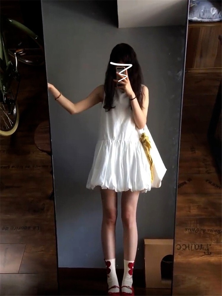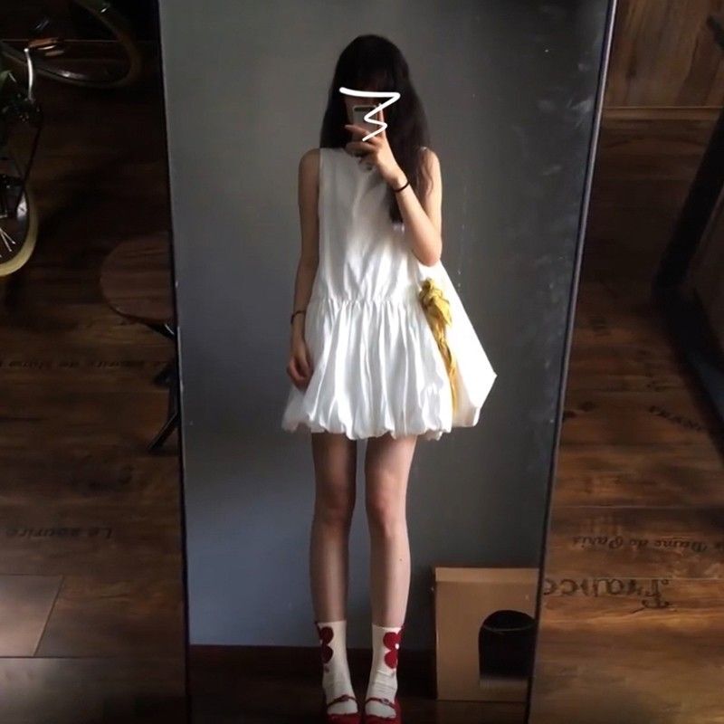 • 法式小个子白色无袖背心连衣裙子女夏季2025新款花苞蓬蓬吊带